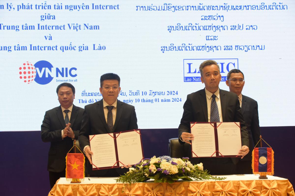 On 10 January 2024, within the framework of the Digital Transformation Week in Laos, and under the bilateral cooperation program between the Ministry of Information and Communications of Vietnam and the Ministry of Technology and Communications of Laos, the Vietnam Internet Center (VNNIC) signed bilateral Memoranda of Understanding (MoUs) with the Lao National Internet Center (LANIC) and the Lao Telecommunications Regulatory Authority (LTRA).