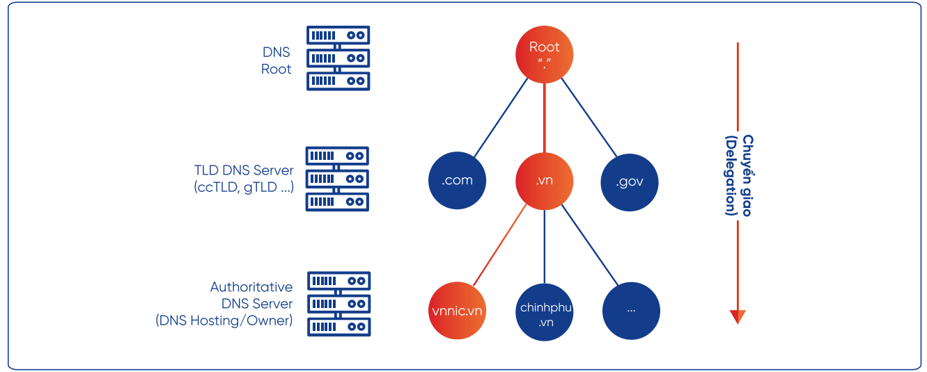 Trong ví dụ này, chuỗi sẽ bắt đầu từ zone Root ".", tiếp theo là vn., và sau đó là vnnic.vn.