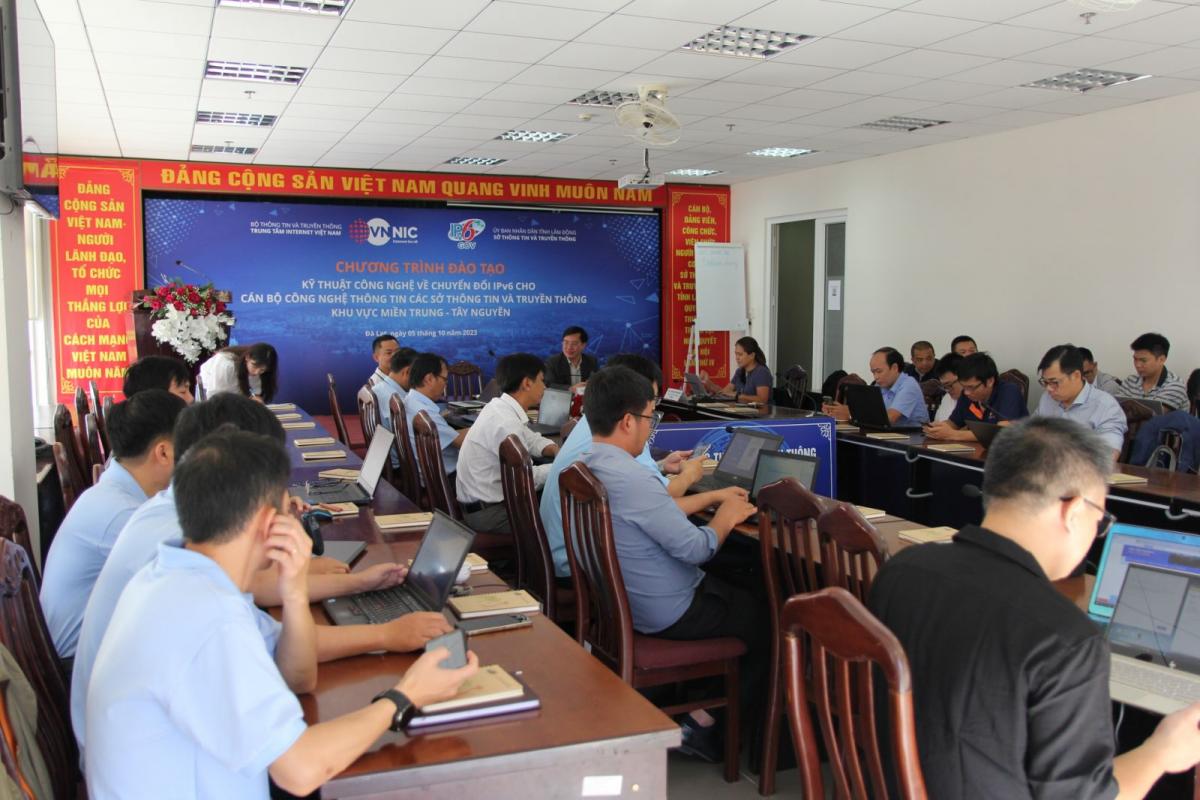 Ngày 05/10/2023, trong khuôn khổ chuỗi sự kiện VNIX-NOG 2023, Trung tâm Internet Việt Nam (VNNIC) tổ chức Chương trình đào tạo kỹ thuật, công nghệ về chuyển đổi IPv6 cho mạng, dịch vụ cơ quan nhà nước dành cho cán bộ công nghệ thông tin (CNTT) các Sở TT&TT khu vực miền Trung – Tây Nguyên. Chương trình diễn ra tại thành phố Đà Lạt, với sự phối hợp tổ chức của Sở TT&TT tỉnh Lâm Đồng.