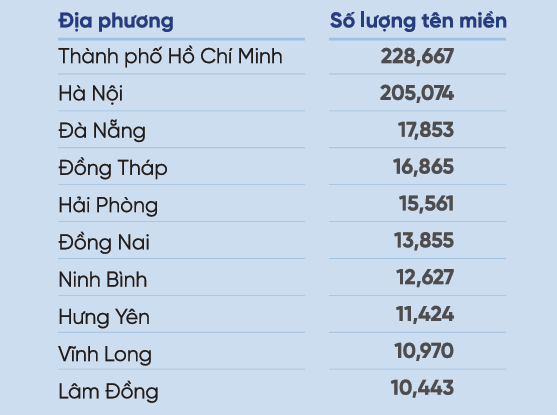 10 địa phương có số lượng tên miền “.vn” lũy kế cao nhất cả nước