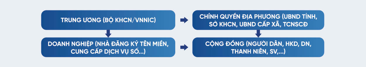 Để làm được điều này, Trung tâm Internet Việt Nam (VNNIC) với vai trò định hướng, triển khai cách làm đổi mới, sáng tạo với mô hình 04 Nhà gồm Nhà nước - Chính quyền địa phương - Doanh nghiệp - Cộng đồng, đảm bảo việc điều phối, giám sát tiến độ bằng công cụ số xuyên suốt, minh bạch, giúp triển khai nhanh, đúng trọng tâm và bền vững.