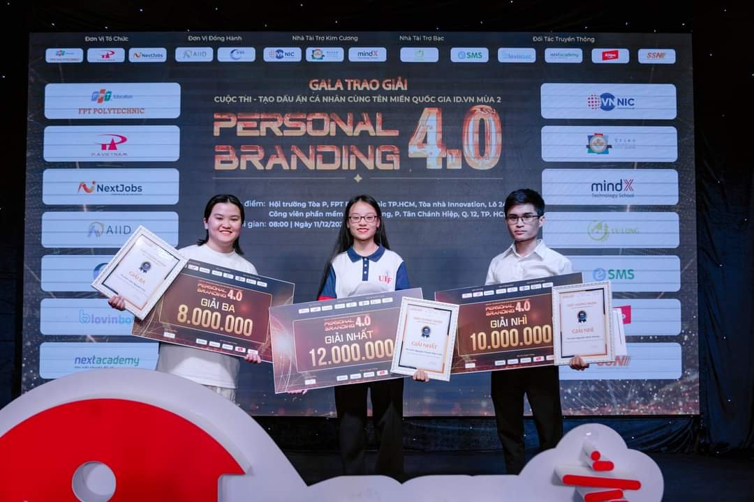 Ngày 11/12/2023 tại TP. Hồ Chí Minh, Cuộc thi “Personal Branding 4.0” mùa 2 đã chính thức khép lại với Gala trao giải tràn đầy sức trẻ của các bạn sinh viên từ các trường đại học, cao đẳng khu vực TP.HCM. Cuộc thi được tổ chức bởi NextJobs và P.A Việt Nam (Nhà đăng ký tên miền “.vn”) phối hợp cùng Cao đẳng FPT Polytechnic TP. HCM, cùng với sự đồng hành của Trung tâm Internet Việt Nam (VNNIC) và Hiệp hội Internet Việt Nam (VIA) đã thu hút nhiều nhân tố sáng giá xây dựng thành công thương hiệu trực tuyến với website cá nhân sử dụng tên miền quốc gia ID.VN.